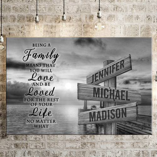 Coast Sunset "Being A Family Means You Will Love And Be Loved" Multi-Names Premium Canvas Poster