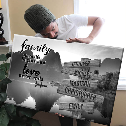Mountain River Where Life Begins And Love Never Ends Multi-Names Premium Canvas