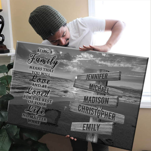 Sunset Beach "Being A Family Means You Will Love And Be Loved" Multi-Names Premium Canvas