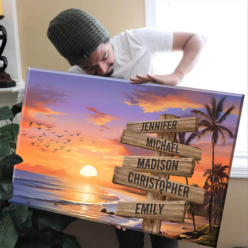 Beach Sunrise Multi-Names Premium Canvas