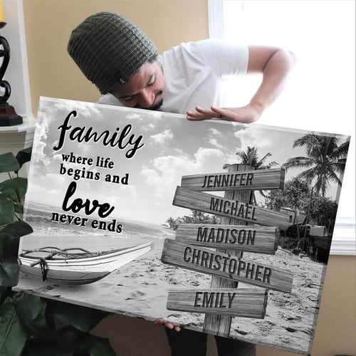 Summer Beach Where Life Begins And Love Never Ends Multi-Names Premium Canvas