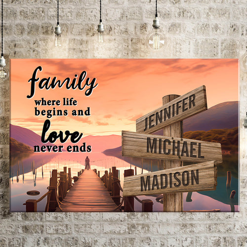 Riverside at Dusk Where Life Begins And Love Never Ends Multi-Names Premium Canvas