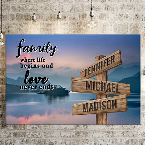 Riverside Sunset Where Life Begins And Love Never Ends Multi-Names Premium Canvas Poster