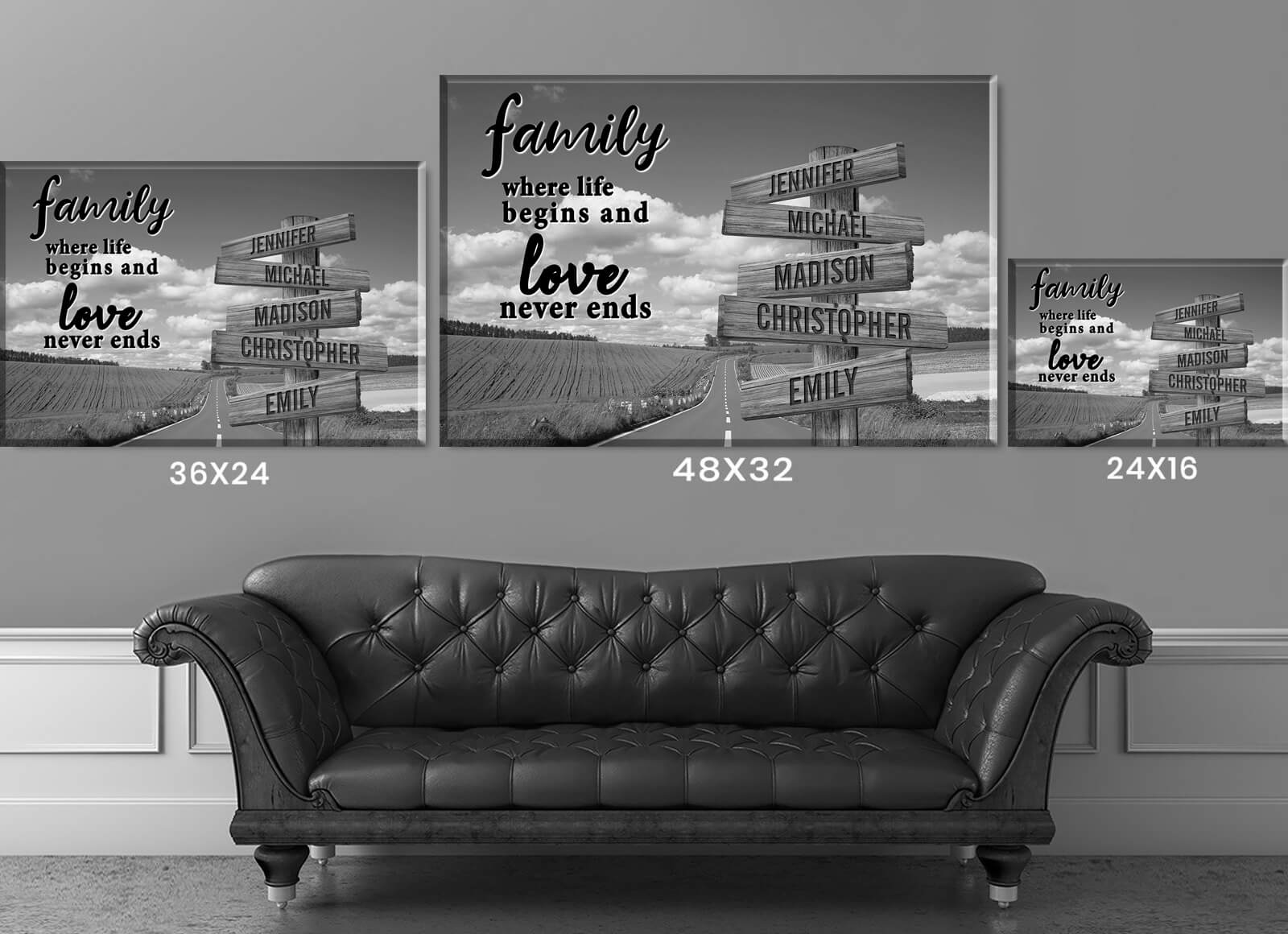 ♥ Country Road Where Life Begins And Love Never Ends Multi-Names Premium Canvas ♥ – This is the perfect gift for your lovers, parents, kids, or friends, or anyone you love - your search is over! This is guaranteed to bring a smile to their face. It’s perfect for your home to be admired by many and makes an awesome gift for any special occasion.