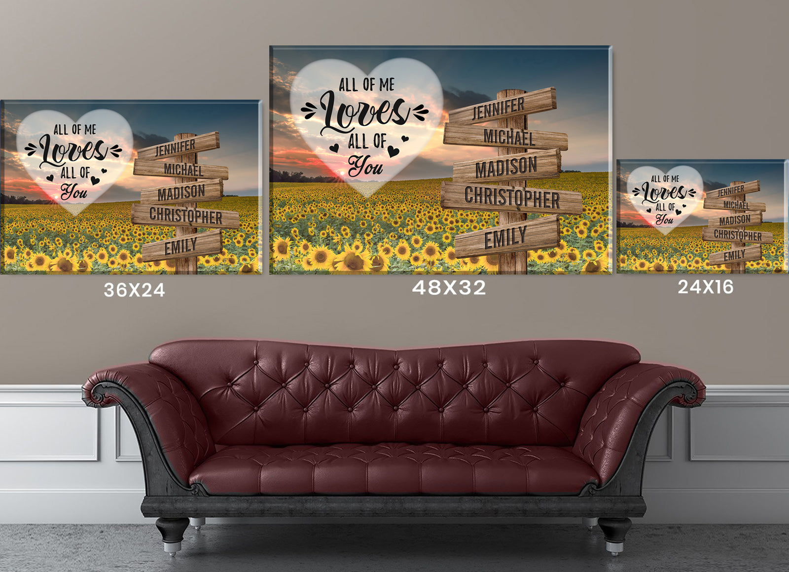 ♥Sunflower Sunset Color All of Me Loves All of You Multi-Names Premium Canvas Poster ♥ – This is the perfect gift for your lovers, parents, kids, or friends, or anyone you love - your search is over! This is guaranteed to bring a smile to their face. It’s perfect for your home to be admired by many and makes an awesome gift for any special occasion.